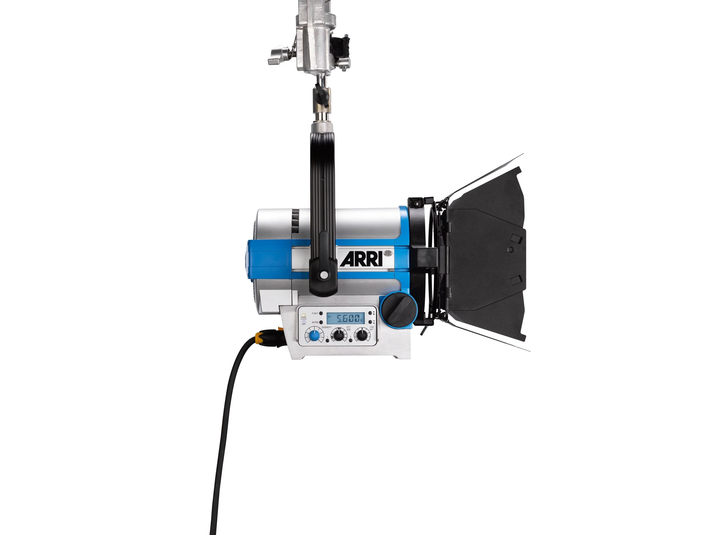 The Arri L5-C complements the L7, allowing for more mobile lighting and a wider range of power classes for television studios. Its compact size and low weight allow the L5 to be rigged in tight places and hung from low ceilings. The L5 is also ideal for cramped location shoots and interview setups. Low heat allows safer and more comfortable shooting conditions. Features available on the L5 include a powerCON power connector and an on-board battery input that permits industry-standard batteries to power the L5 without any sacrifice in terms of features or light output. The resulting increase in portability opens up whole new application areas, giving productions with the L5 the tremendous freedom to move and work fast. The L5 is approximately 45 % brighter than a 300 W tungsten Fresnel, but only consumes 115 watts. When compared to the L7, the L5 is half the weight and size.