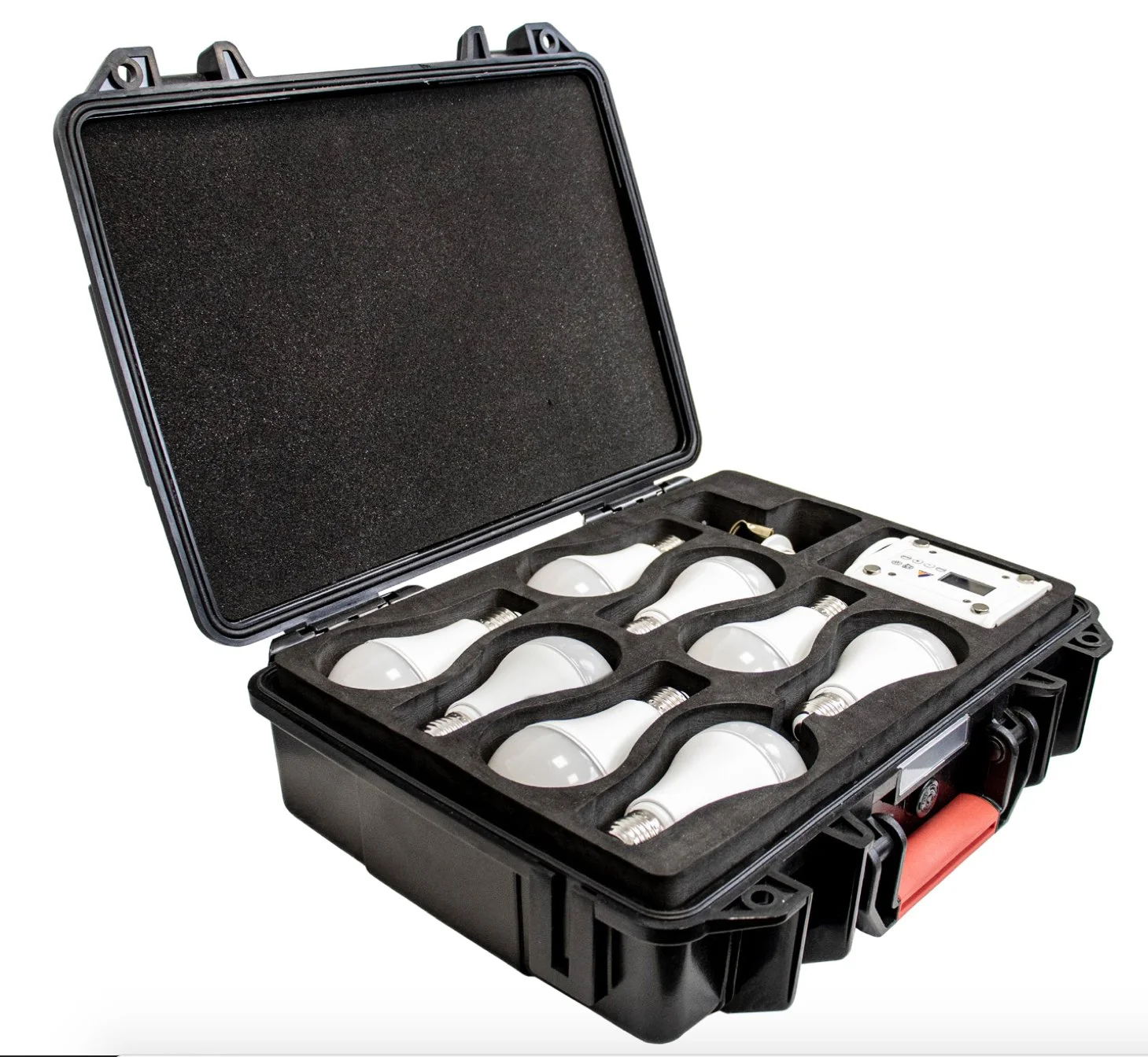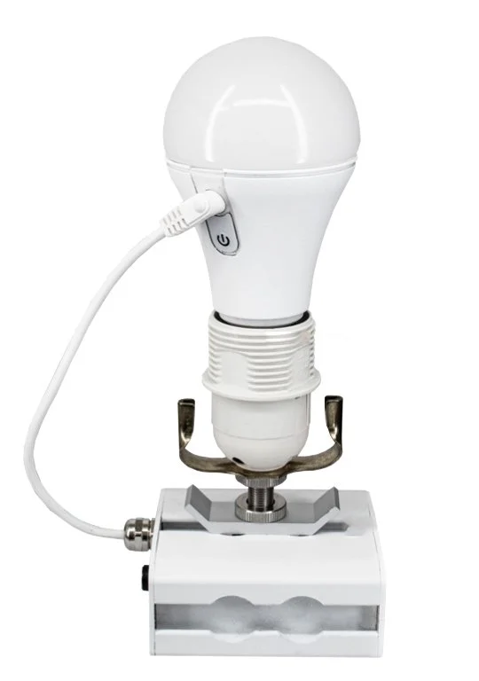 The Astera NYX LED RGBA+M Battery Bulb is a color-tunable LED bulb for professional film, stage and event productions.  Not bigger than a normal LED bulb, it contains a CRMX receiver as well as RF and Bluetooth modules for the AsteraApp. It can be powered via lamp socket or with a standard power bank and thanks to its Titan LED engine, it displays precise colors and white tones with ultra-high CRI and TLCI.