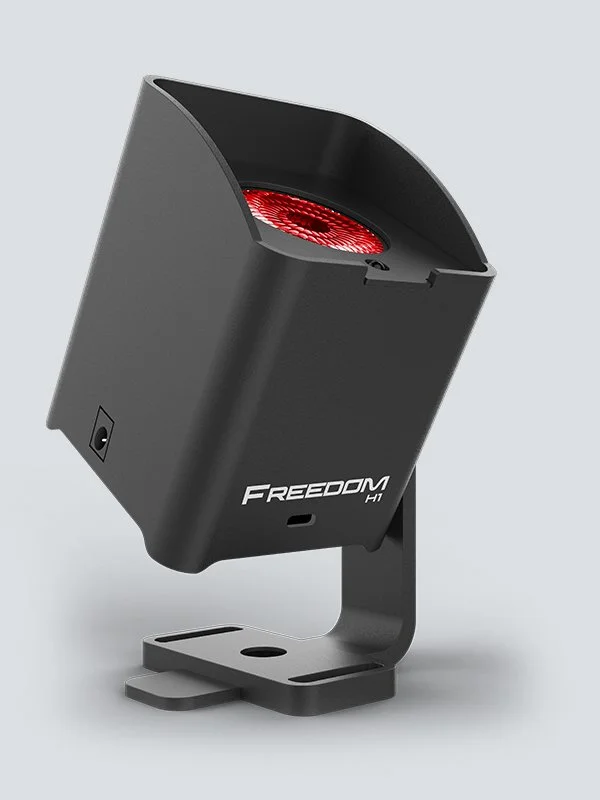 The Chauvet DJ Freedom H1 is a compact 100% TRUE wireless, battery-operated, LED wash light with a built-in D-Fi transceiver. The fixture features a single hex-color (RGBAW+UV) 10W LED. Its magnetic base makes it easy to mount the light to most metal surfaces providing added versatility. Because of its small size, Freedom H1 features effortless transport and set-up. Freedom H1 has a digital display for easy control and adjustment of all settings. Multiple control options include stand-alone mode, wireless DMX, or IR.