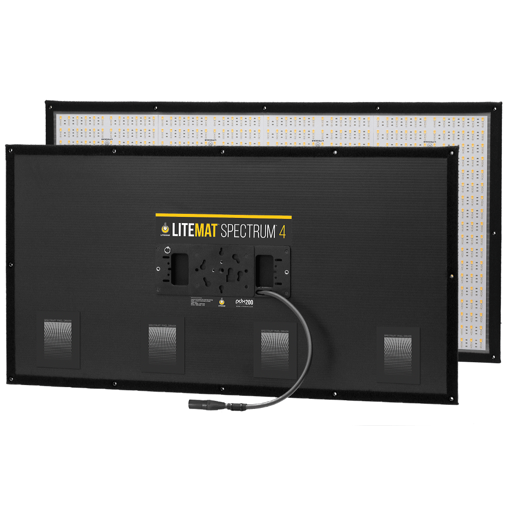 LiteMat Spectrum 4 is a lightweight LED lighting fixture system designed for cinema, television, and HD video. By providing evenly spaced, color-correct LEDs spread out over a large area, LiteMat creates soft light without requiring diffusion. The “softthrough-pixelization” method allows the unit to achieve bright levels while remaining 0.9 in. (23 mm) thick in size and 7.4 lb. (3.4 kg.) in weight.